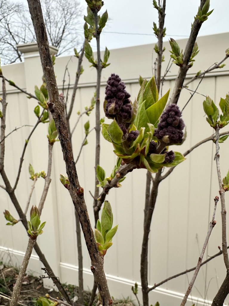 Early April in Illinois = gardens are starting to wake up. The weather is inconsistent, generally dreary and cool. One warmish day is flanked by two cool ones. The trees and shrubs, with a few exceptions, have tiny leaves and buds. If you’re not paying close attention, you’d assume they’re completely bare. Happily, I’m paying attention!